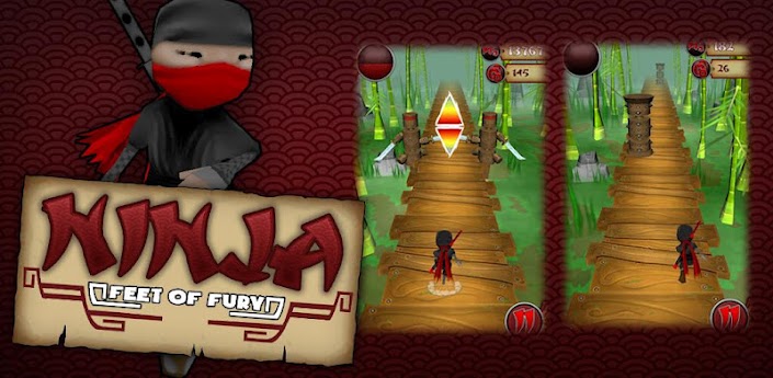 Em Pés Ninja of Fury você enfrenta o desafio final para se tornar um ninja completo.Enfrentar os perigos da floresta de bambu. Como o jogador percorre os diversos desafios da floresta eles precisam para coletar moedas como muitos como possível, enquanto permanecer na trilha. Eles podem usar essas moedas recolhidas para desbloquear power-ups. Esses altos poder-dar ao jogador habilidades incríveis.
